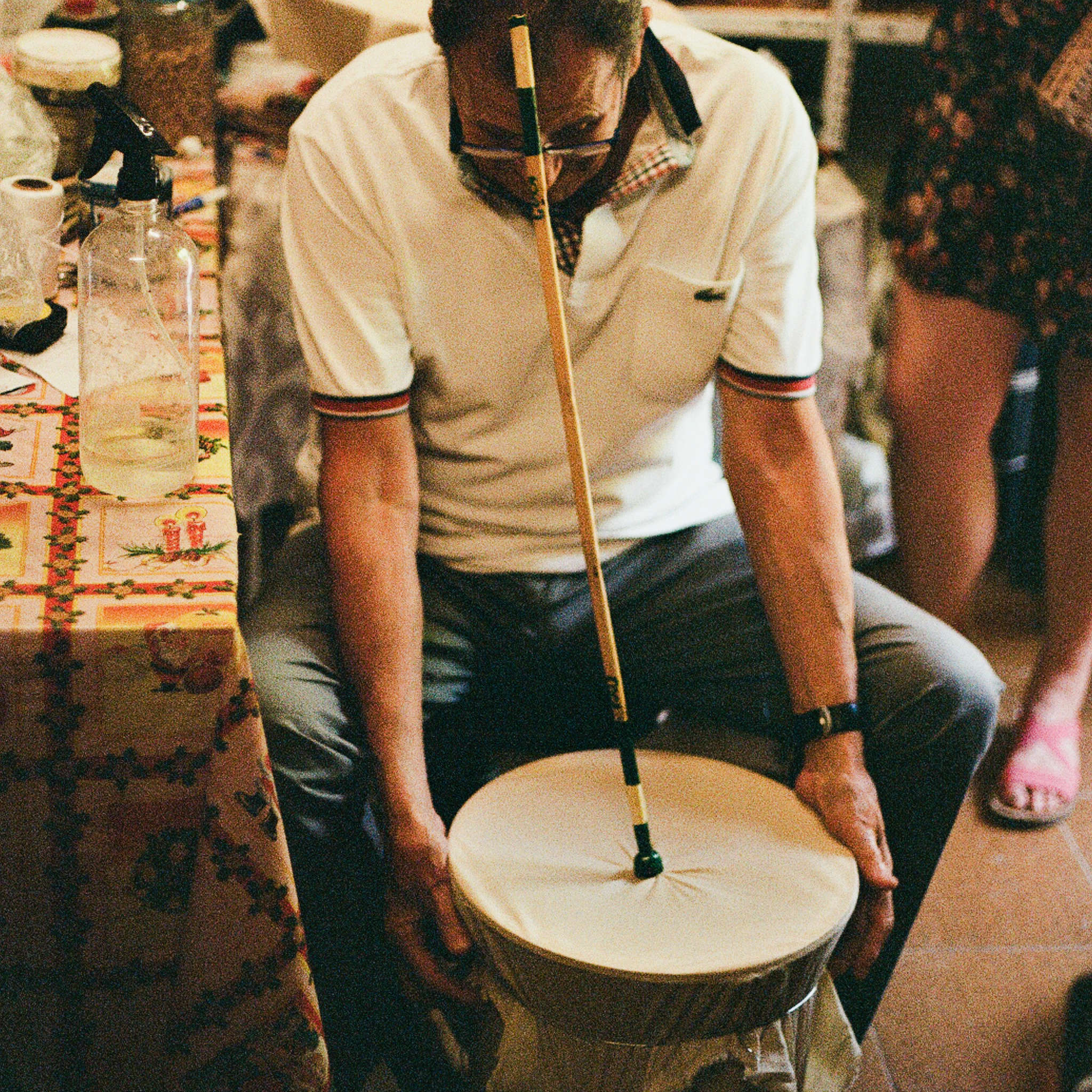 A partir de ahí, Belenish y Óscar Escudero activaron el espacio con su laboratorio de escucha. Capturar el aire contenido en una pieza, la vibración de un gesto, la resonancia del territorio a través de un objeto. Paralelamente, Los Coca montaba los sistemas tradicionales de zambombas sobre los cuerpos cerámicos, prolongando en ellos una genealogía de saberes compartidos.