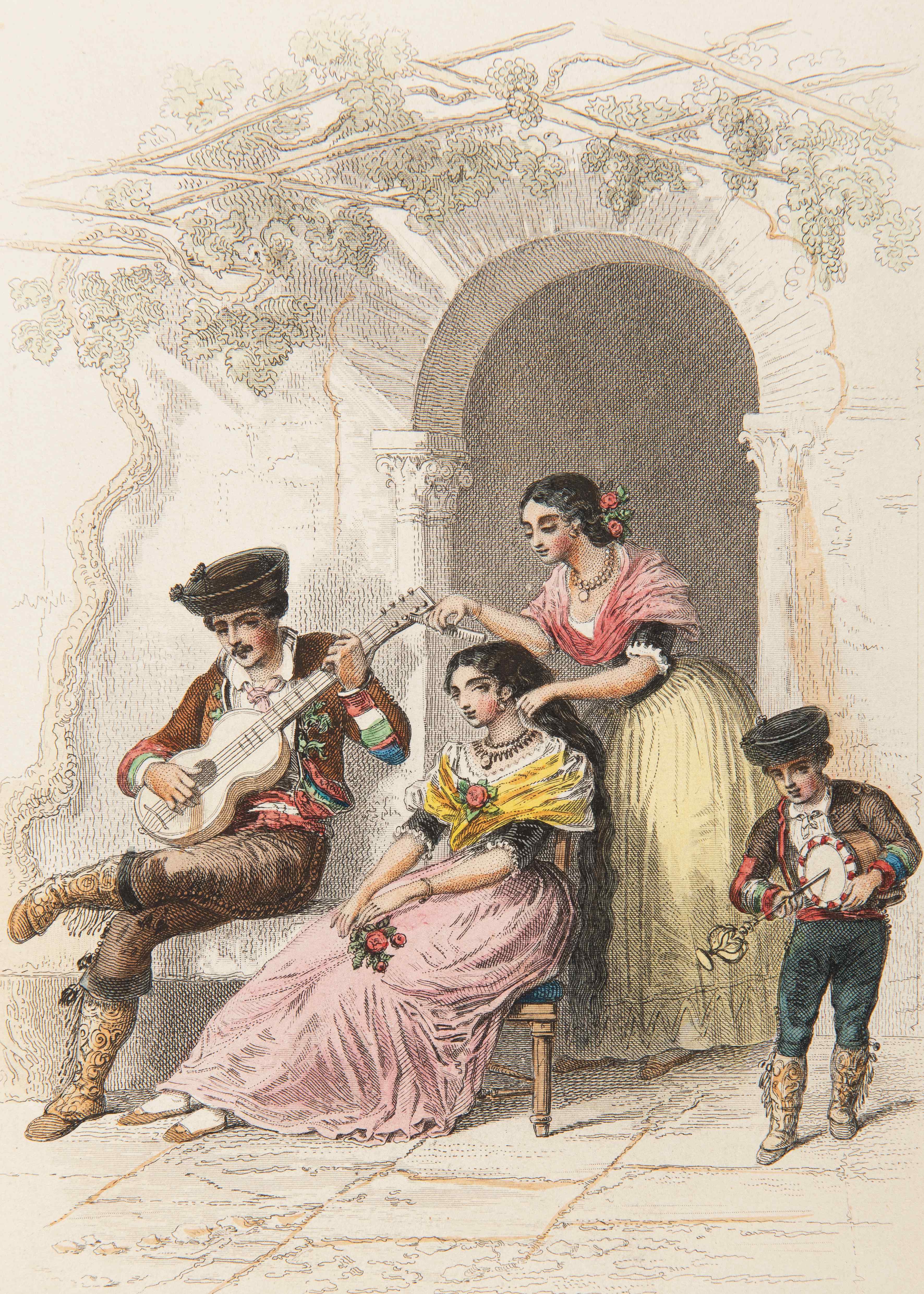 Domingo por la mañana en Granada. La zambomba. Hermanos Rouargue / 1851. CADF