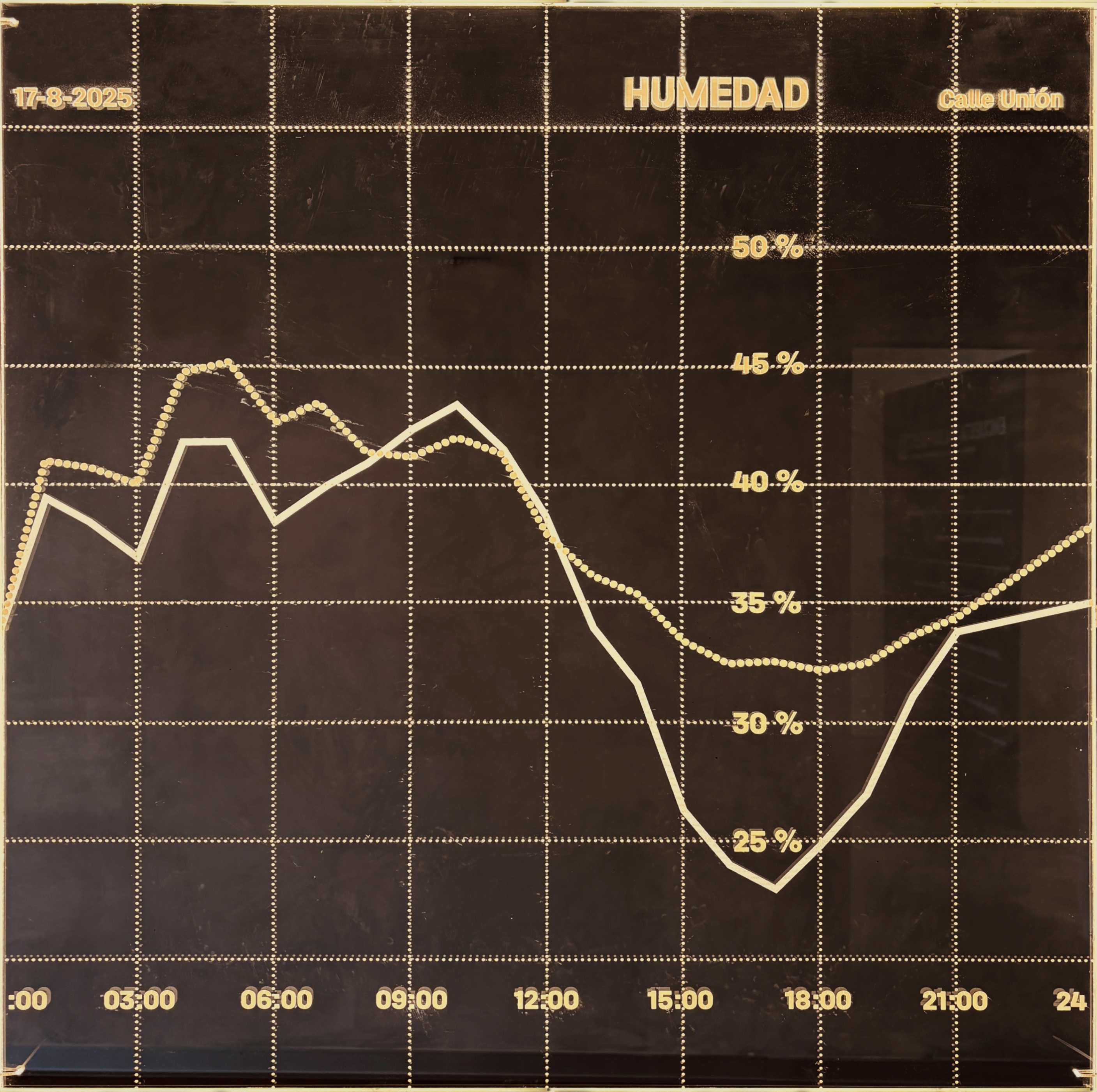Los diagramas que se muestran a continuación proceden de un análisis comparativo entre sensores instalados en la calle Unión a 1,5 m de altura, uno al sol y otro bajo las parras: